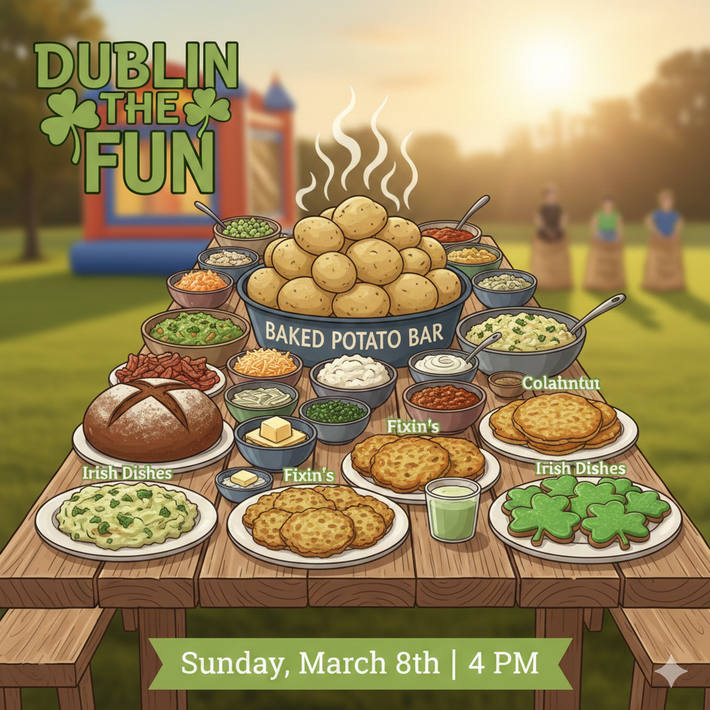 Bring a dish, bring a friend, and let’s Dublin the fun!