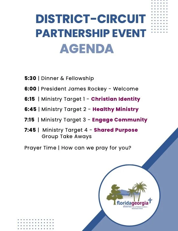 Congregations across our District will come together for a meal and round table discussions with the goal to be equipped and to better connect people to Jesus in their communities.